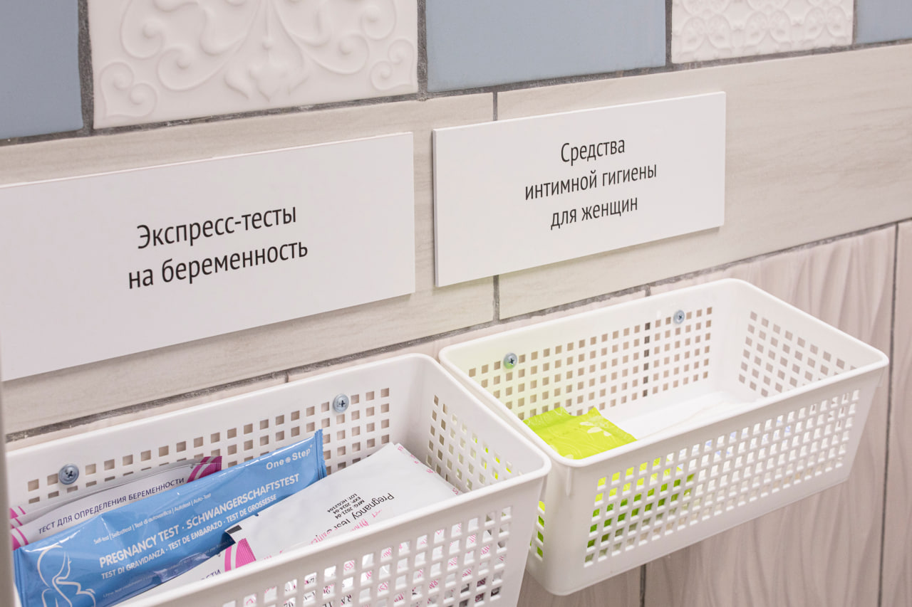 Поэтому прокладки (а также тесты на беременность и крем для рук) обычно всегда есть в свободном доступе в туалете для посетителей клиники. А еще предметы гигиены мы выдаем пациенткам с урологическими проблемами.